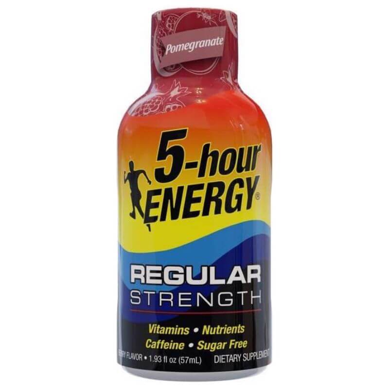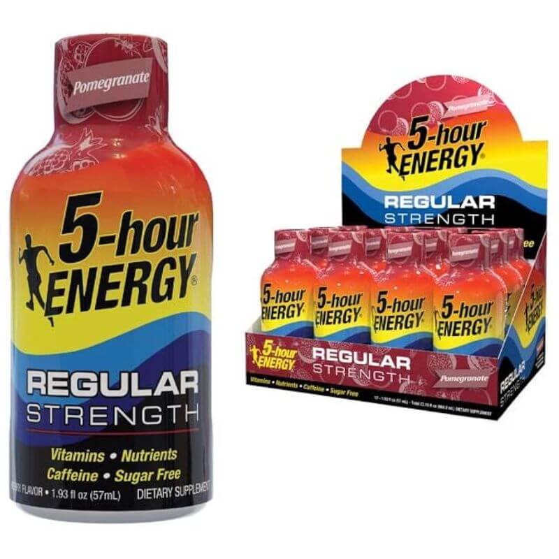 5-hour ENERGY Shot, Regular Strength Pomegranate is Packed with vitamin B, amino acids, caffeine and delicious flavoring, it takes seconds to drink, and in minutes you’re feeling alert and energized. 5-hour ENERGY shots contain 4 calories, zero sugar and caffeine comparable to a cup of the leading premium coffee. No refrigeration is required prior to opening and it can be easily stored in desk drawers, gym bags or purses for on-the-go life. Enjoyed by college students, business professionals, night shift workers or anyone who just works hard, 5-hour ENERGY shots are a convenient way to tackle a busy lifestyle. Let a Pomegranate flavored 5-hour ENERGY shot help you power through your day.