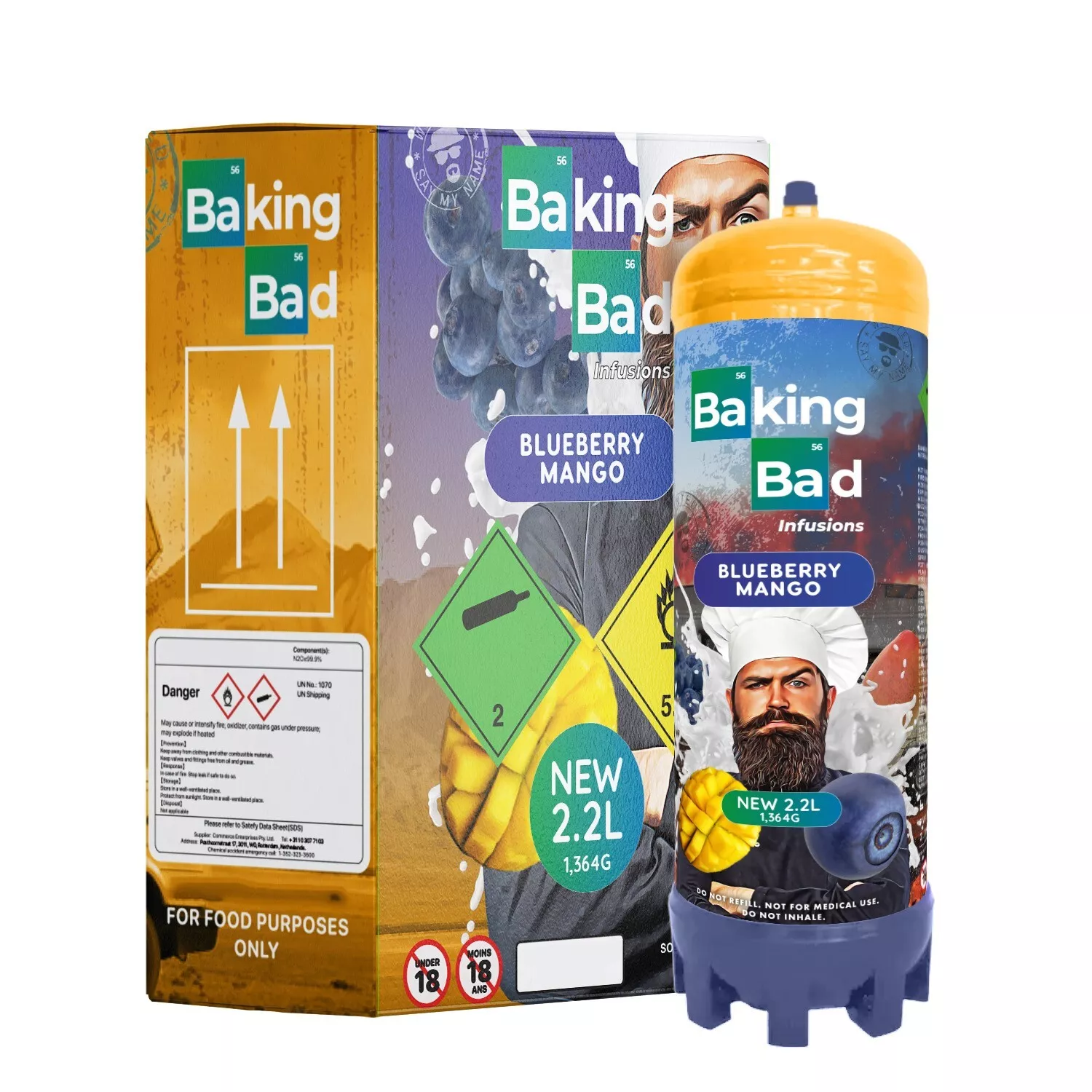 Baking Bad Flavored Cream Charger Canisters bring innovation and flavor to your kitchen! With a 2.2L/1350g capacity, each canister provides approximately 80 standard chargers, perfect for whipping up whipped cream, flavor-infused cocktails, and more. Enjoy a time-saving refill process and reduced waste with our cutting-edge design. Featuring premium culinary gas and a delicious Strawberry flavor, Baking Bad is your secret ingredient for culinary success. Regulator kit sold separately. Safety and environmental responsibility included with every purchase!