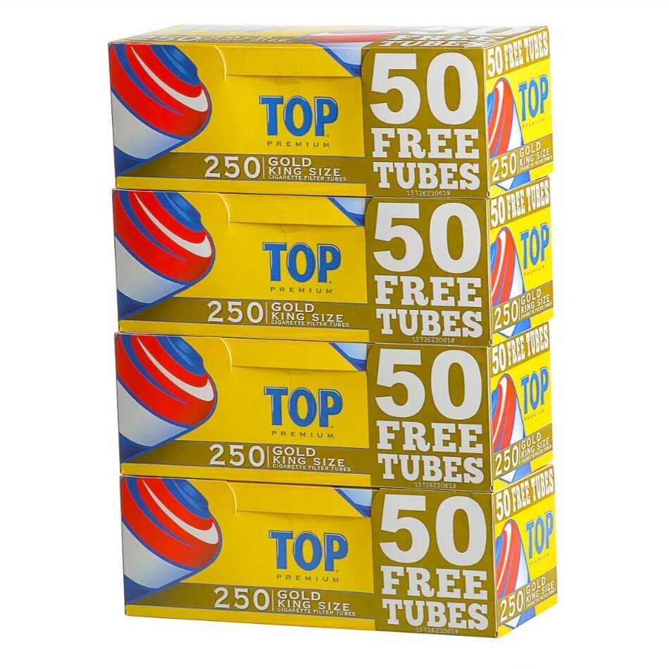Top Premium Cigarette Filter Tubes | 50 Free Tubes | King Size | 4 Cartons of 250 | GOLD (Light)