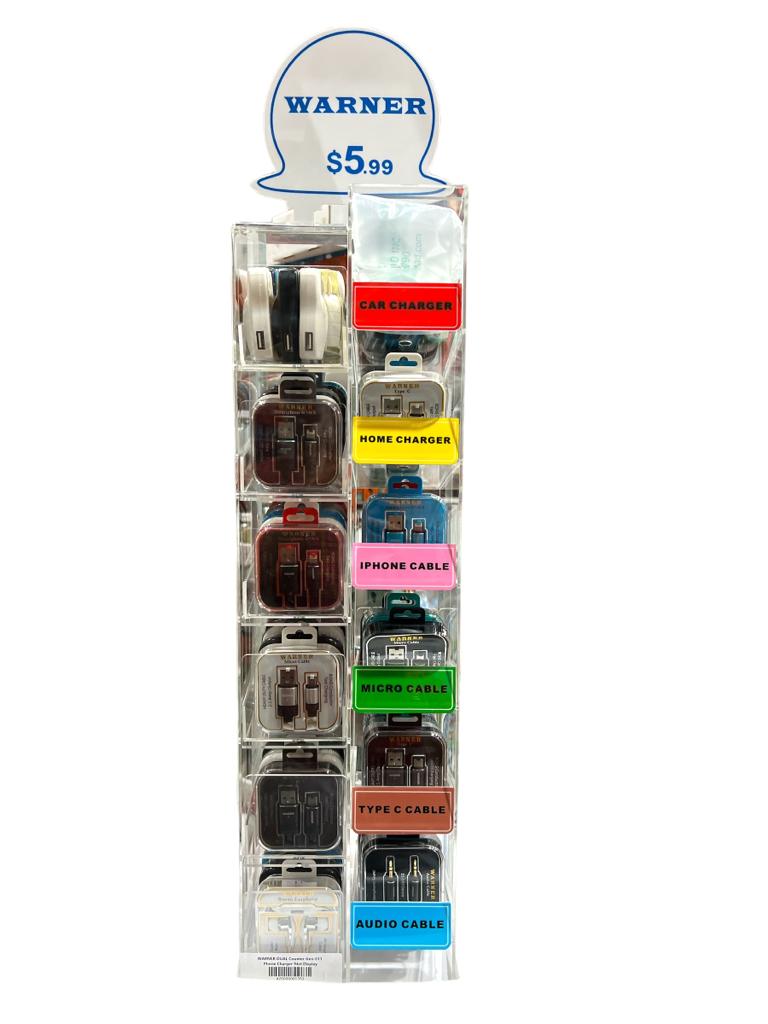 Warner Display (011) 110ct | Earphone x 6 | Type C Cable x 16 | Micro Cable x 9 | IP Cable x 52 | Audio Cable x 8 | USB Wall Adapter x 13 | Car Charger Adapter x 7
