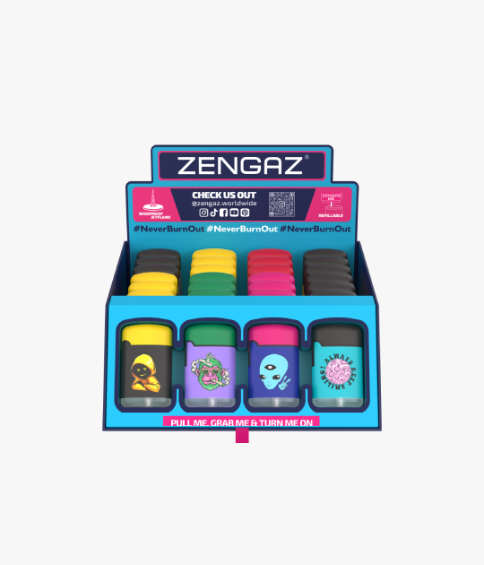 Zengaz Torch Lighter - Bullet Display Mixed Designs - 28 CT